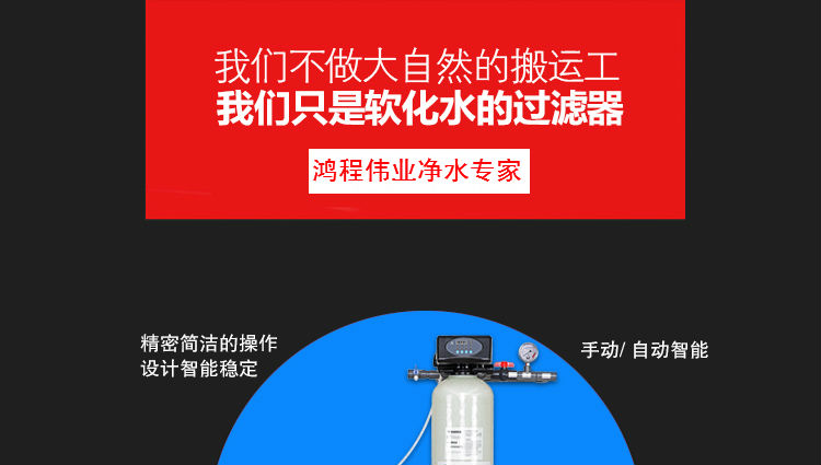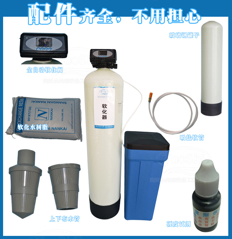 全自動軟化水設備是將軟化器運行及再生的每一個步驟實現軟水自動控制,并采用時間、流量或其它感應器等方式來啟動再生。全自動軟水器裝置的基本構成為:FLECK或Autotrol多路控制閥、樹脂罐(含001*7樹脂)、鹽箱及管路系統。